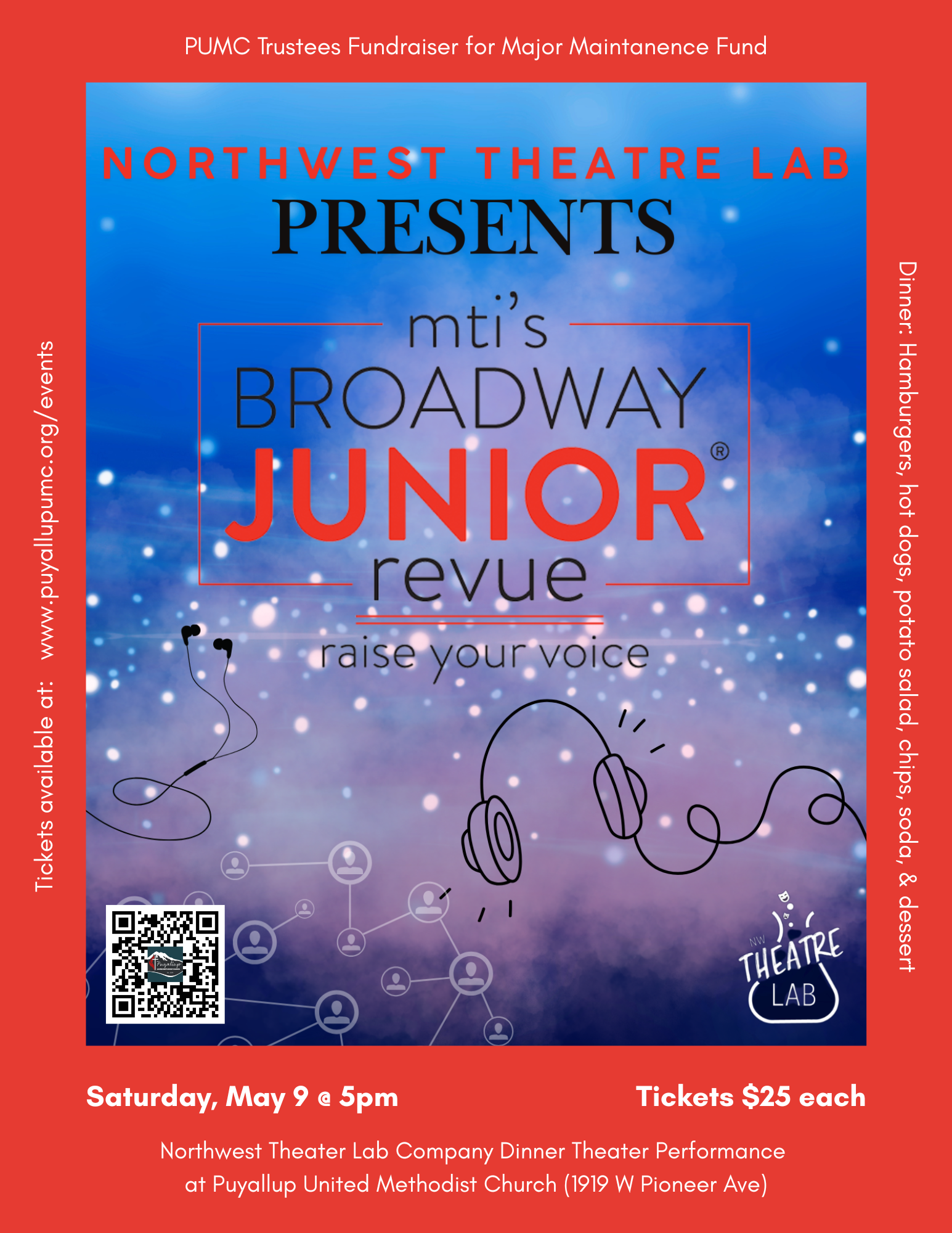 Raise Your Voice is a dynamic Broadway Junior musical revue, presented by the Northwest Theatre Lab Company Members as a special evening performance on Saturday, May 9, at Puyallup United Methodist Church.